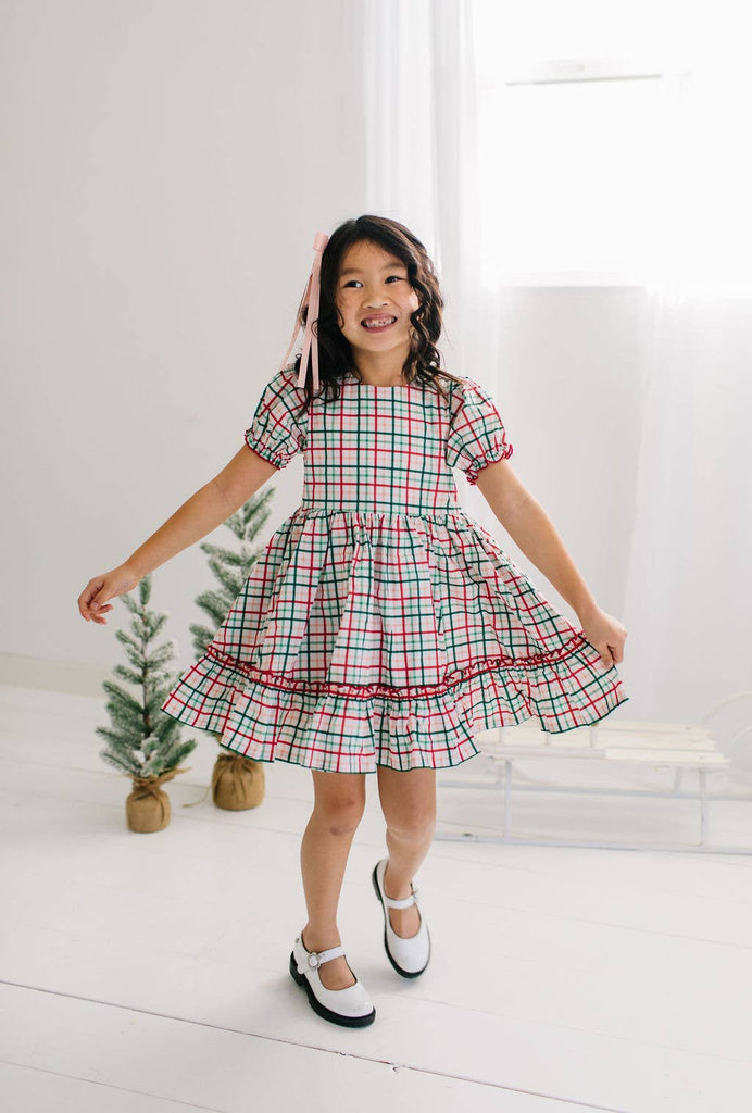 Aura Poplin Dress in Holiday Plaid | Girls Dress