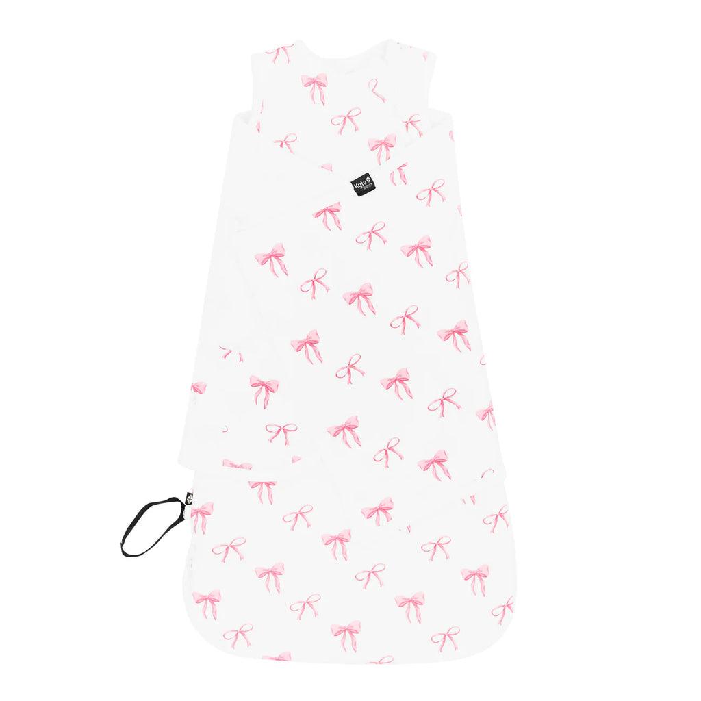 Our Sleep Bag Swaddler is an all-in-one sleep system that comforts your baby from the newborn stage to the next. Made from our signature bamboo rayon, our patent-pending sleep bag swaddler functions as both a swaddle and a 1.0 sleep bag. The attached swaddle wrap features a Velcro closure for a secure and adjustable fit, and is fully removable once swaddling is no longer recommended. There’s also a removable elastic loop that is fastened with a snap closure that can be placed around the bottom of the sleep bag. The additional step of tightening the sleep bag helps for little ones who haven’t fully grown in to their new sleep bag yet. Underneath the wrap is our award-winning sleep bag.