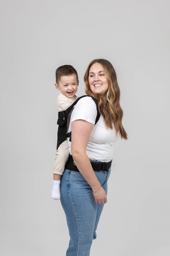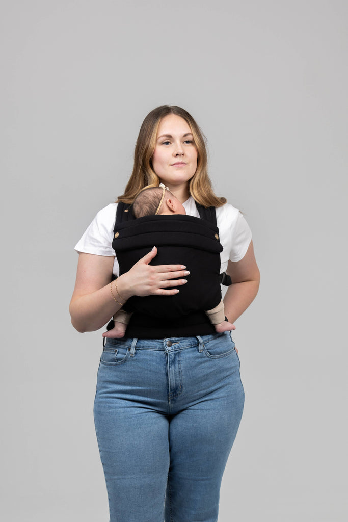 The best selling carrier, now available in a gorgeous, textured, deep black. Sleek and versatile, this carrier has the same quality build and features as our houndstooth, and is perfect for anyone looking for a simple, sleek, and timeless look that goes with everything.