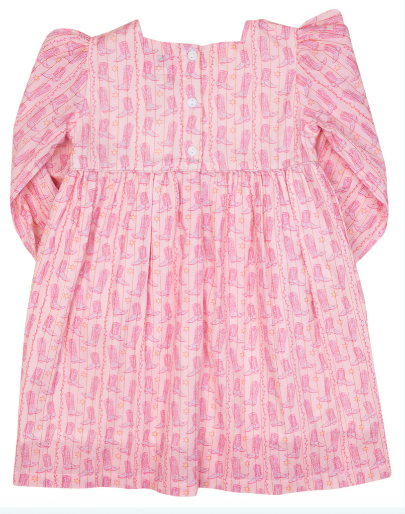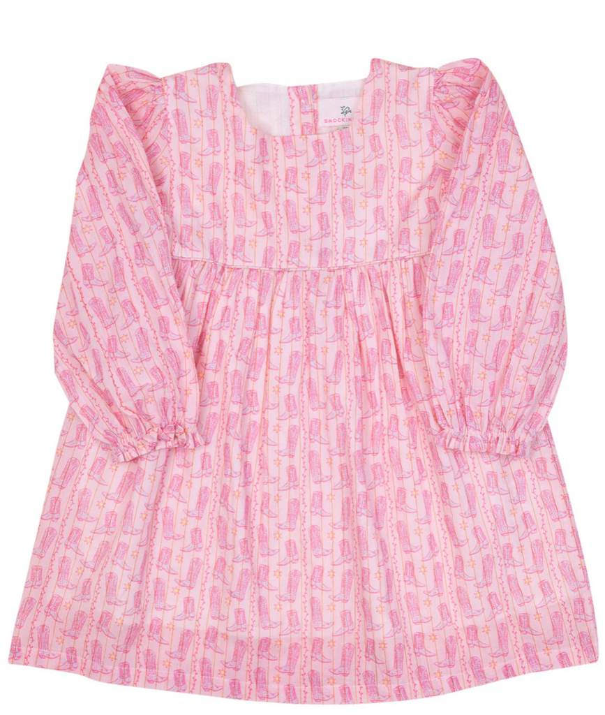 A little bit of country, a whole lot of charm! This Cowgirl Boots Dress with Gold Lurex is the perfect blend of western flair and feminine elegance. Featuring a fun cowgirl boot print with shimmering gold lurex accents, this dress shines with every twirl. The long sleeves and square neckline add a touch of vintage charm, making it ideal for fall festivities, rodeo days, or casual outings.