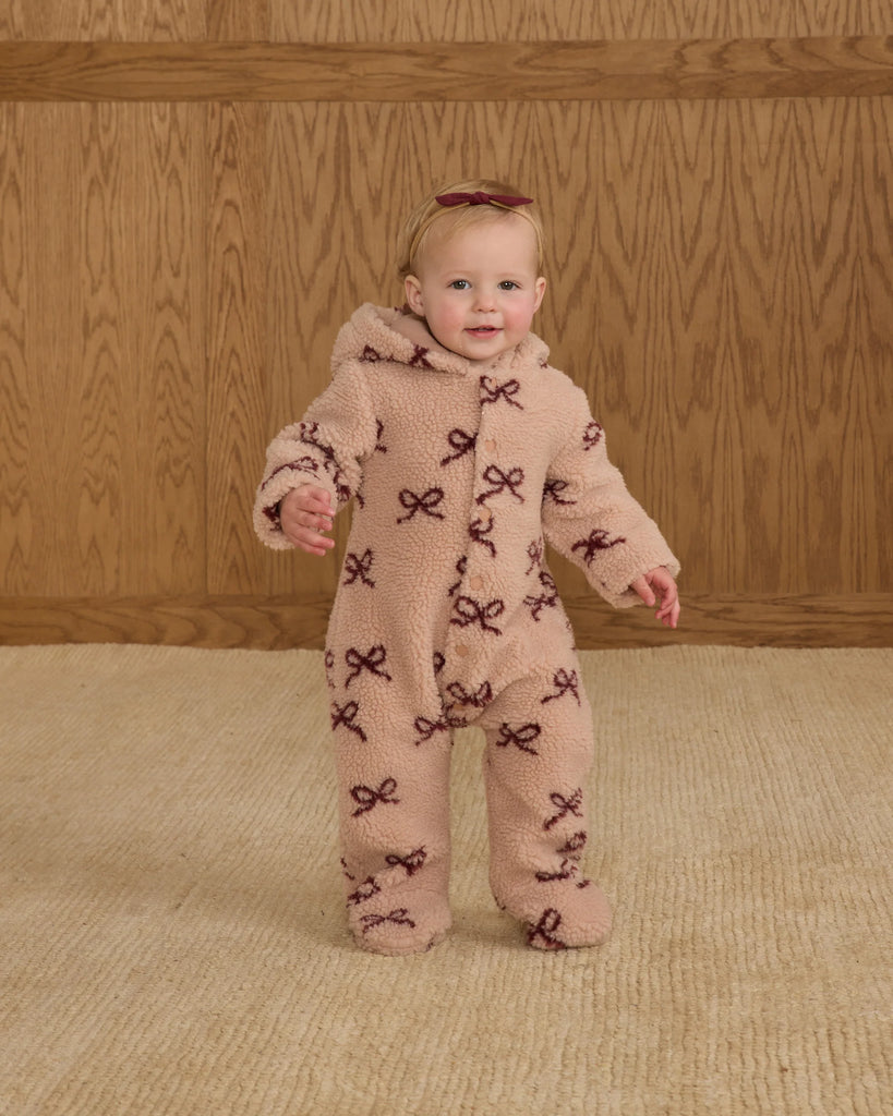 This hooded fleece jumpsuit is the perfect layer to keep your little one warm and comfortable. Made from our soft shearling fabric, it features a fleece-lined hood and torso, silky matte poly lining on the arms and legs, and front button snaps for easy changes and layering.