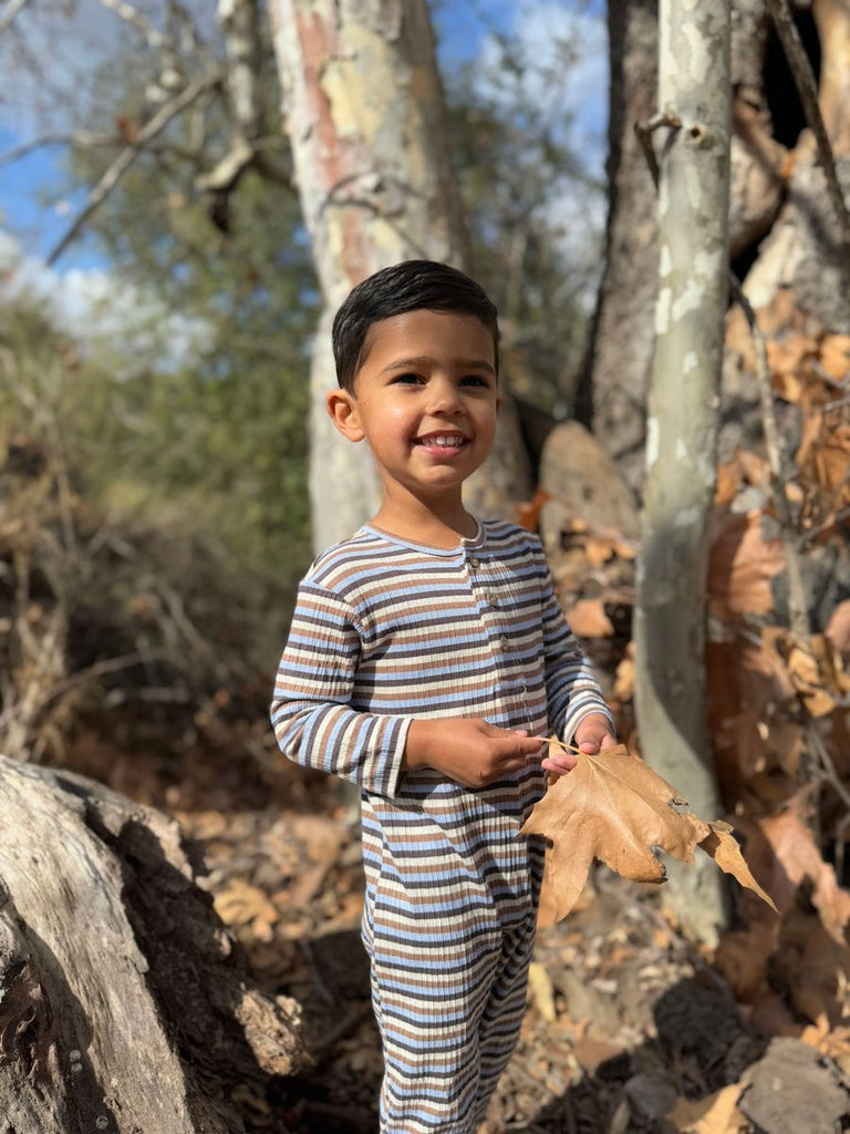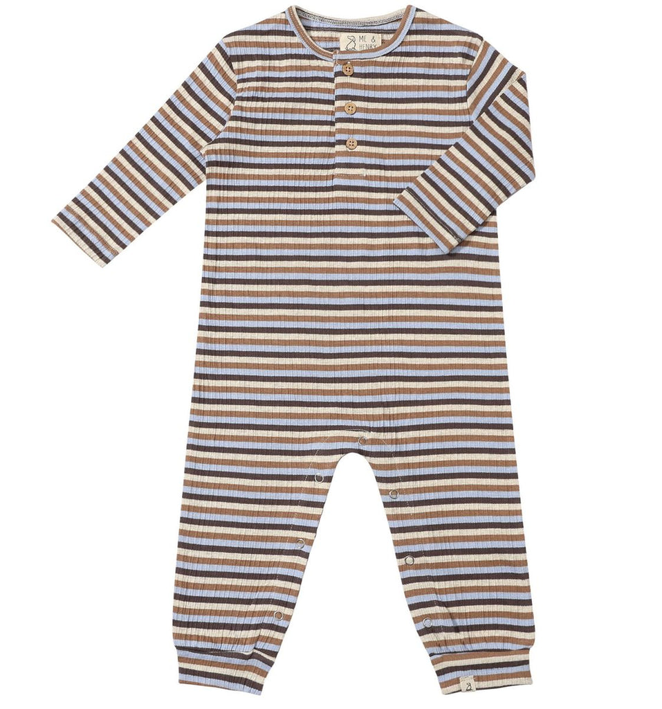 Mason Ribbed Henley Romper- Beige/Blue/Cream