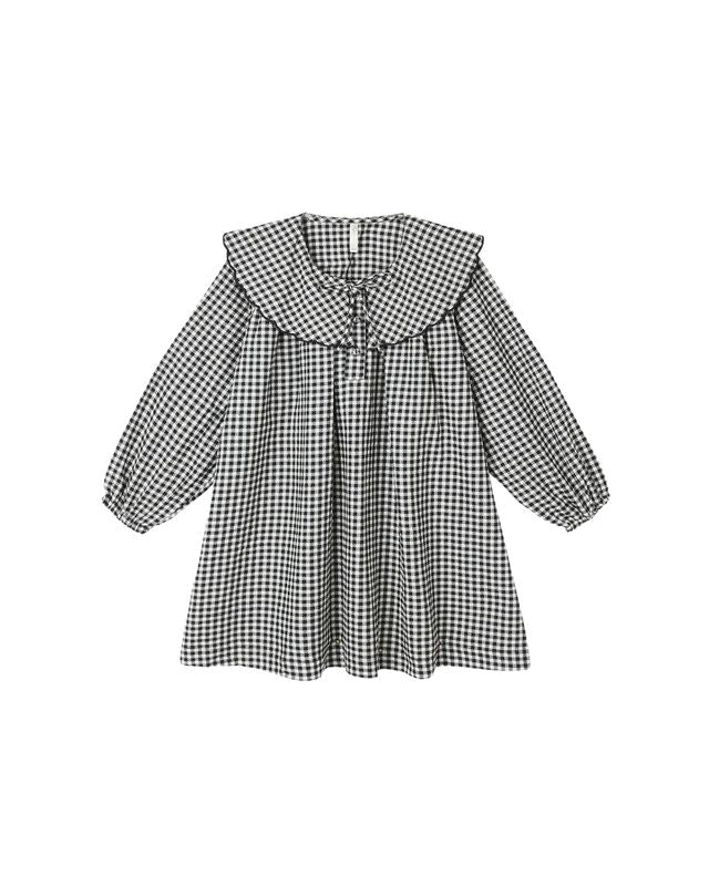 Our Mini Dress features a charming oversized collar with merrowed scalloped edges, balloon sleeves, and a front button placket for a sweet finish.