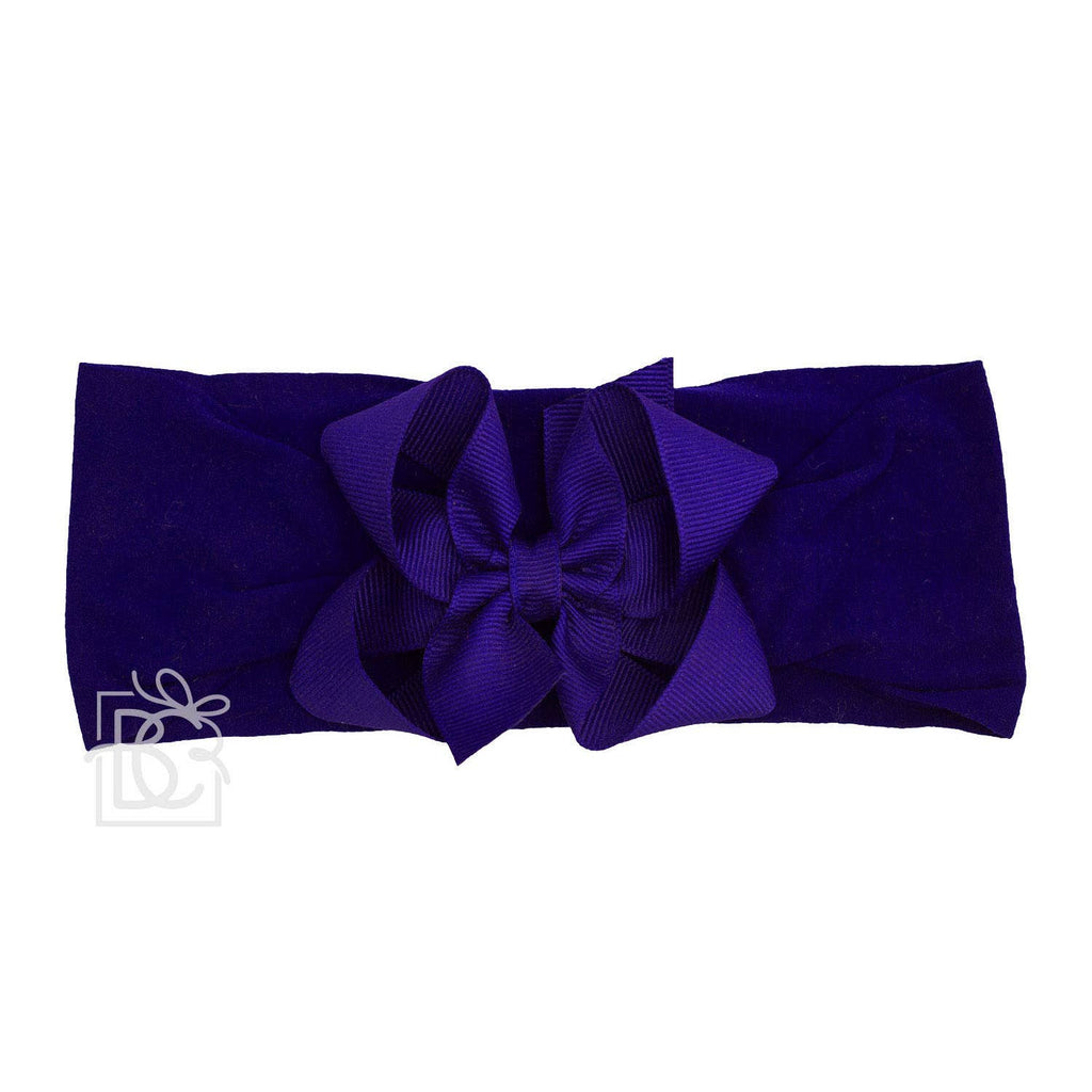 WIDE PANTYHOSE HEADBAND W/CLASSIC GROSGRAIN BOW: LIGHT PINK / 3+ Months / 4.5" Large